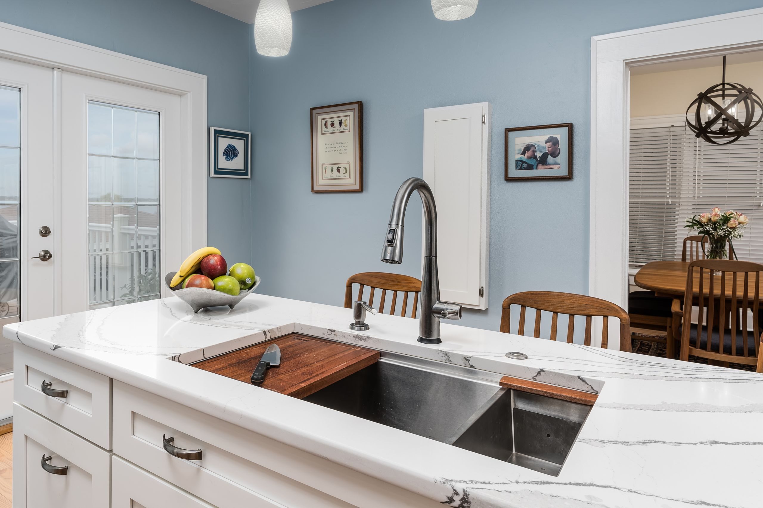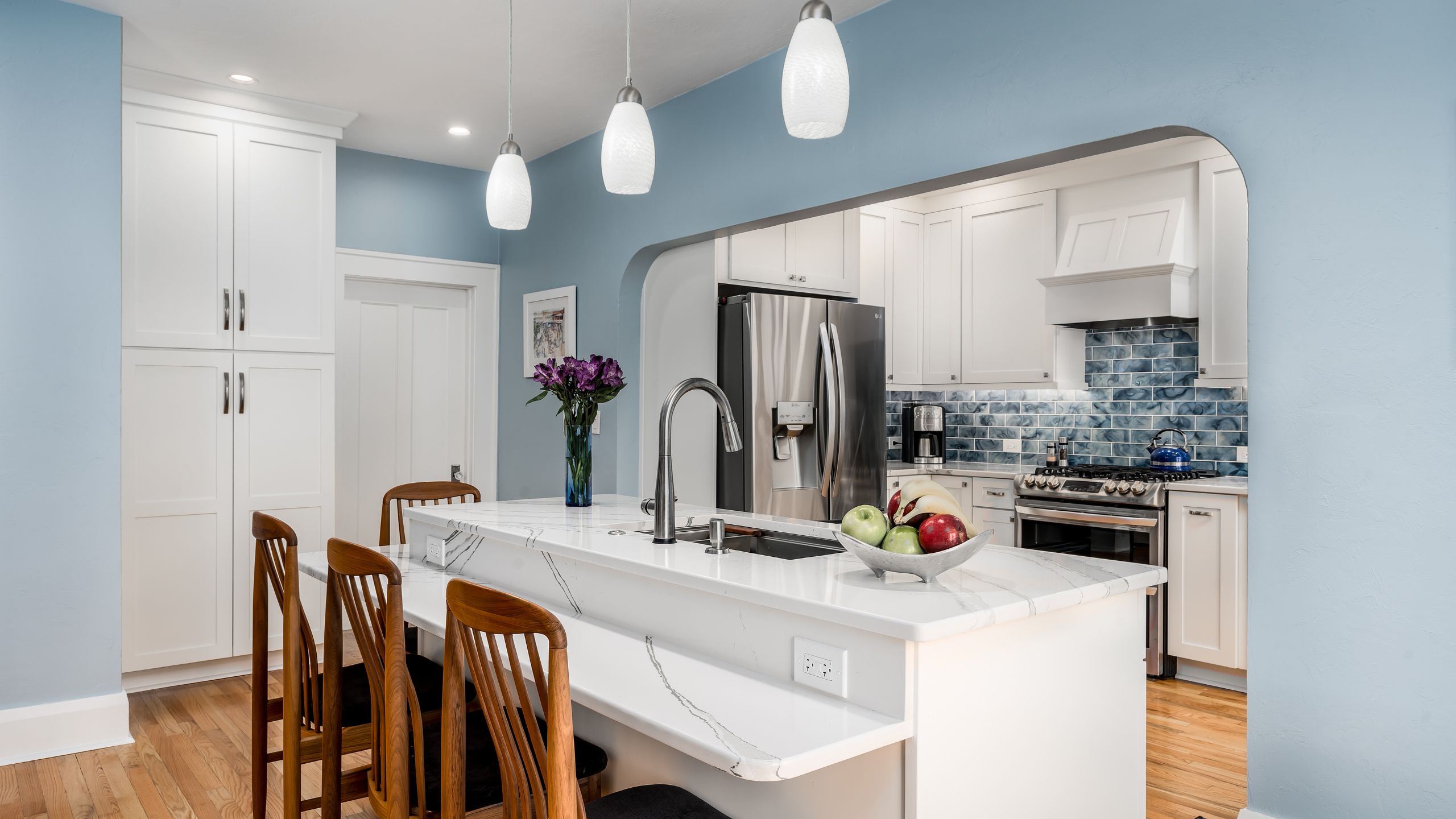 To avoid costly structural work and maintain the original hardwood flooring, we kept the island location intact. This decision allowed us to respect the home’s existing footprint while still delivering a fresh, functional space.